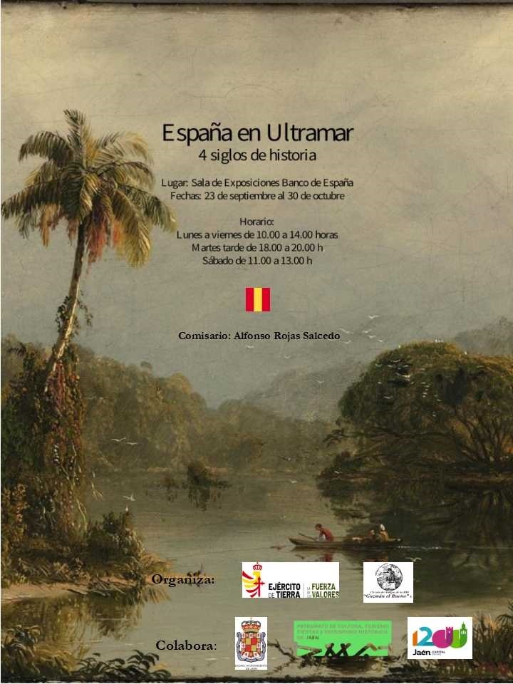 Esta exposición, organizada porel Patronato Municipal de Cultura, Turismo, Fiestas y Patrimonio Histórico delAyuntamiento de Jaén, comisariada por Alfonso Rojas Salcedo, Embajador MarcaEjército de la provincia de Jaén, en colaboración con la Brigada "Guzmán elBueno X" de Córdoba y el Círculo de Amigos de la Brigada X, pretende acercar alos visitantes a los 4 siglos de presencia española en ultramar a través de lascuestiones más relevantes de aquel periodo histórico poniendo el foco en lo quesupuso el encuentro entre dos mundos: la comunicación interoceánica, quepropició la primera globalización, los avances en la navegación, el intercambiocomercial y cultural, las conquistas, exploraciones y expediciones militares ycientíficas con los nuevos descubrimientos geográficos así como los nuevosdescubrimientos en materia de botánica y fauna, del mestizaje como símboloúnico del Imperio Español, así como del legado español en aquellas provinciasetc¿ La exposición también alberga un pequeño apartado dedicado a jienenses queformaron parte de aquella aventura en ultramar.