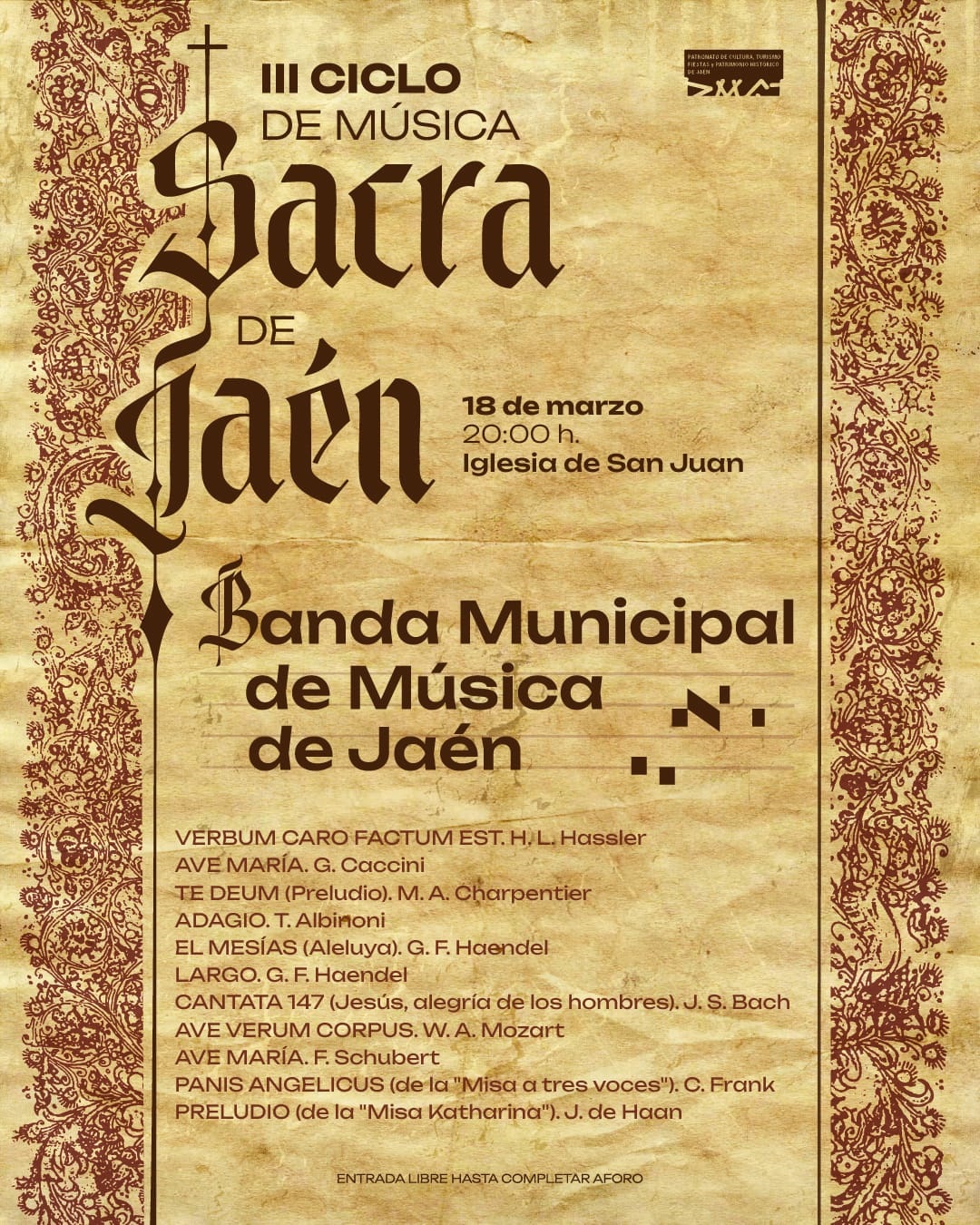 Haga click para ampliar imagen: III Ciclo de Música Sacra de Jaén. Pasión y Gloria por la Banda Municipal III Ciclo de Música Sacra de Jaén. Pasión y Gloria por nuestra Banda Municipal de Jaén.